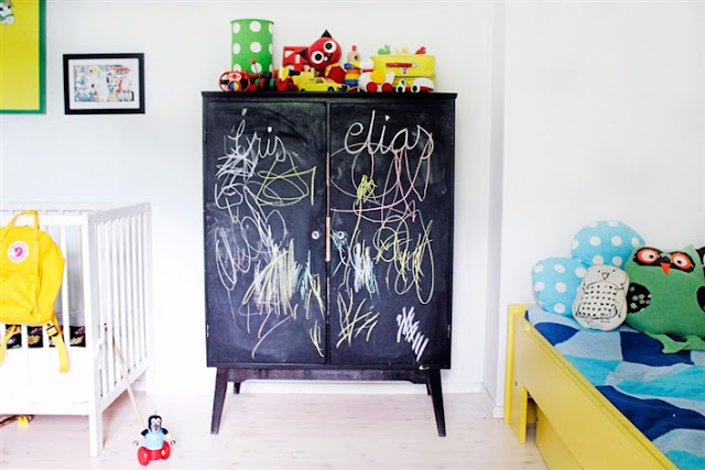 Aquí os dejamos algunas propuestas para utilizar las pizarras en la decoración infantil: