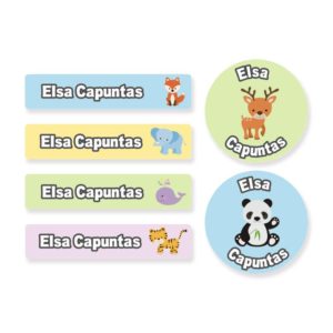 Crear tus etiquetas personalizadas es muy sencillo: elige el color del texto (uno solo para todas las etiquetas o cuatro colores distintos), el icono que más le guste a tu peque y la tipografía que prefieras de las 16 que te ofrecemos, de la más clásica a la más moderna y original. Puedes poner el nombre, uno o dos apellidos y si quieres un número de teléfono, solo ten en cuenta que cuanto más largo sea el texto, más pequeño será el tamaño de la letra. Por eso te recomendamos un nombre y un apellido pero, una vez más, ¡tú eliges!